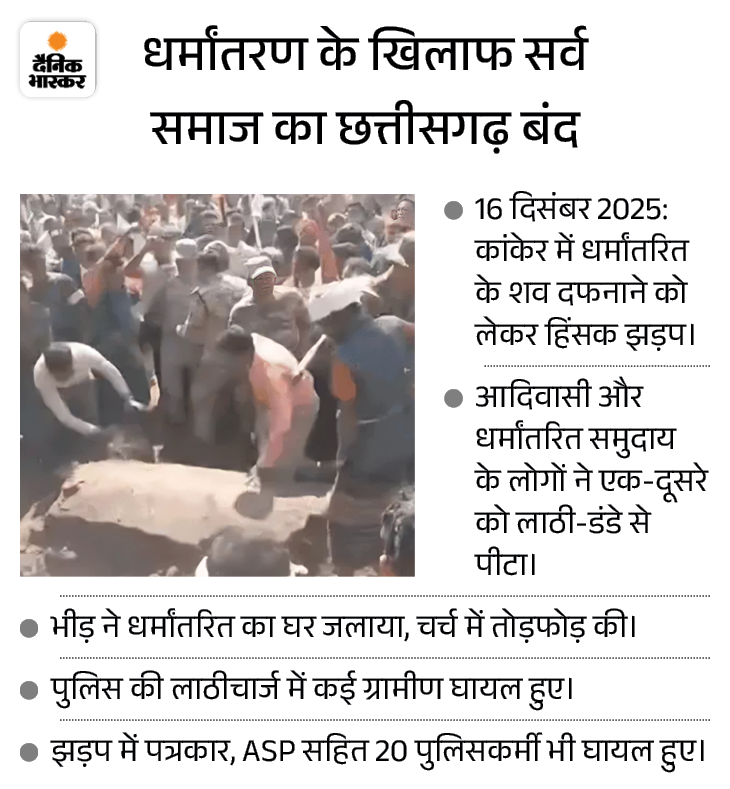 धर्मांतरित व्यक्ति का शव दफनाने को लेकर कांकेर में हिंसा।