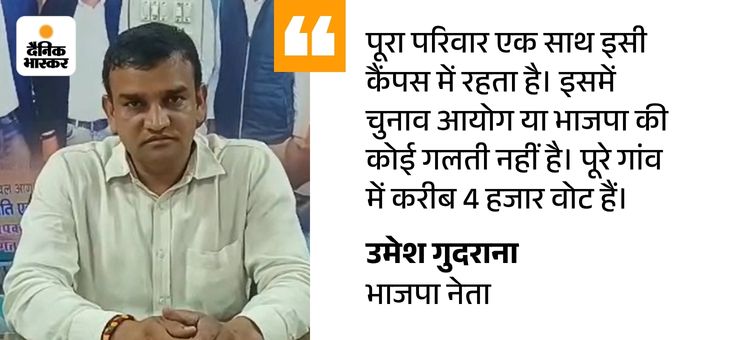 - भाजपा नेता ने गिनाई 3 पीढ़ियां: जिला परिषद के वाइस चेयरमैन उमेश ने कहा कि उनके दादा 4 भाई थे। जबकि उनके पिता के 9 भाई हैं। बाकी तीनों दादा के भी आगे औलाद हैं। पूरे कुनबे के वोट उनके 150 नंबर मकान के पते पर बने हैं। सभी जानकारी ऑन रिकॉर्ड मौजूद है। आज उनके परिवार में 200 के करीब सदस्य हैं। सभी के मकान आसपास हैं, लेकिन वोट एक ही पते पर हैं।
