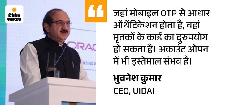 यूनीक आइडेंटिफिकेशन अथॉरिटी ऑफ इंडिया यानी UIDAI के CEO भुवनेश कुमार के मुताबिक भारत के महापंजीयक (RGI) से अब तक UIDAI को 1.55 करोड़ मृतकों का डेटा मिला है। नवंबर 2024 से सितंबर 2025 के बीच 38 लाख और मृतकों की सूची जुड़ी।