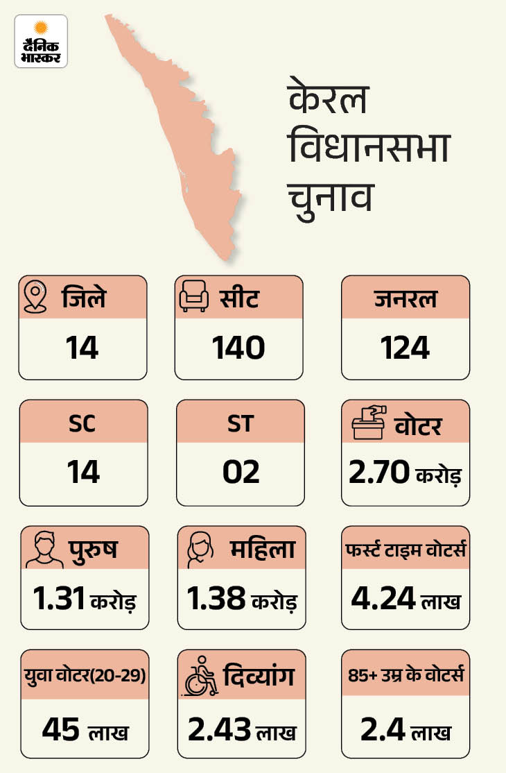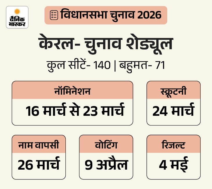 वहीं, BJP अब तक केरल में एक भी विधानसभा सीट जीत पाई है। पिछले लोकसभा चुनाव में यहां उसने त्रिशूर लोकसभा सीट जीती थी। इसके अलावा दिसंबर 2025 में भी BJP ने पहली बार त्रिवेंद्रम (तिरुवनंतपुरम) नगर निगम का चुनाव जीता।