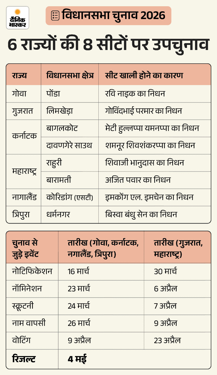 गुजरात-महाराष्ट्र सहित 6 राज्यों की 8 सीटों पर उपचुनाव