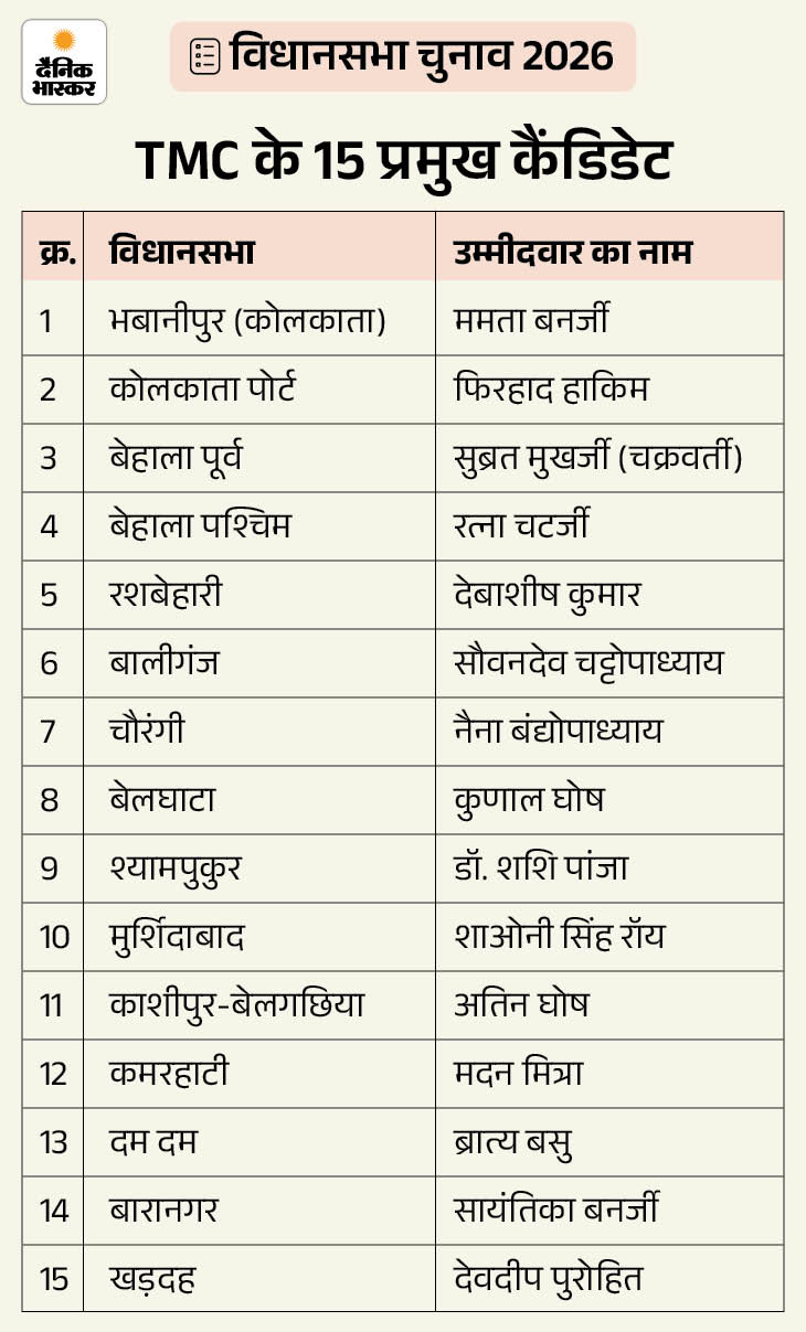 ममता ने सेलिब्रिटी चेहरों से दूरी बनाई। जमीनी नेता और कार्यकर्ताओं पर ज्यादा भरोसा जताया। 2021 में 15 सेलिब्रिटी को टिकट दिया था। इस बार 2 सेलिब्रिटीज को टिकट मिला है।