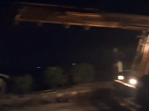 डिवाइडर पर चढ़े ट्रक का दृश्य।