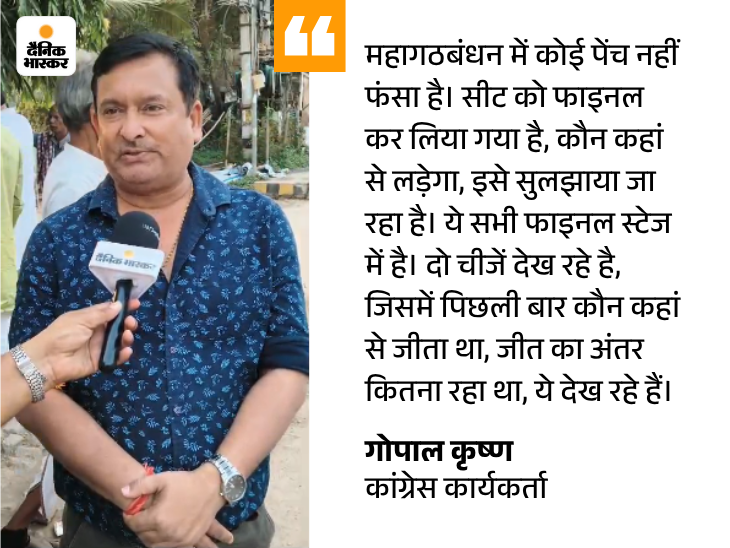 कांग्रेस प्रत्याशियों की लिस्ट जारी होने में देरी को लेकर पूछे गए सवाल पर कांग्रेस प्रवक्ता राजेश राठौर बताते हैं, ‘हमारे महागठबंधन में कहीं कोई विवाद नहीं है। विवाद तो एनडीए गठबंधन में है। भाजपा ने लिस्ट जारी कर दिया है, लेकिन जदयू की लिस्ट जारी नहीं हो रही है, उल्टा सांसद इस्तीफा दे रहे हैं। सांसद कह रहे हैं कि नीतीश से मिलने नहीं दिया जाता है, विजय चौधरी, संजय झा और ललन सिंह विधायकों को नीतीश से मिलने तक नहीं देते हैं।’