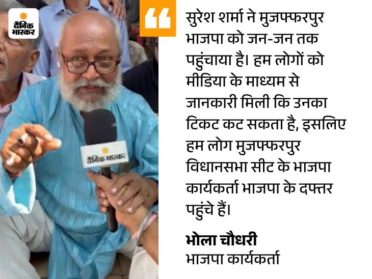वहीं, भोला चौधरी नाम के कार्यकर्ता ने कहा कि, हम लोग मुजफ्फरपुर विधानसभा सीट के कार्यकर्ता हैं। हम लोग सुरेश शर्मा को टिकट देने की अपील करने के लिए पहुंचे हैं। 1000 कार्यकर्ता पार्टी दफ्तर पहुंचे हैं। इसमें मंडल अध्यक्ष, प्रभारी, जिला अध्यक्ष समेत पार्टी के छोटे से बड़े कार्यकर्ता हैं।