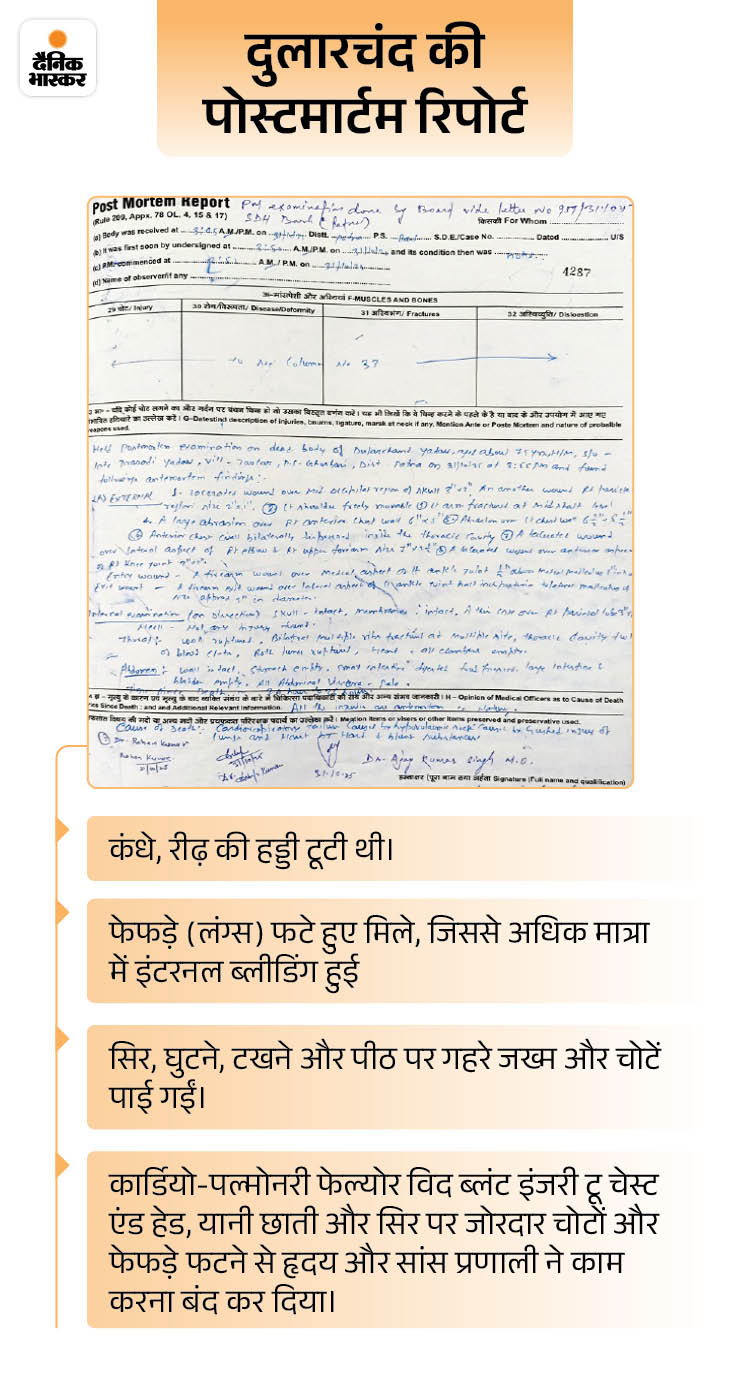 अब पढ़िए दुलारचंद की पोस्टमॉर्टम रिपोर्ट में क्या है