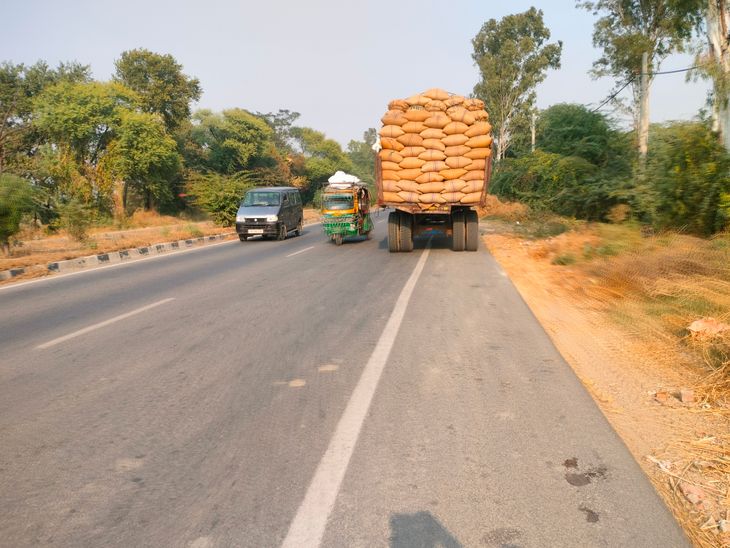 इसराना में रॉन्ग साइड से मंडी जाता ट्रक।