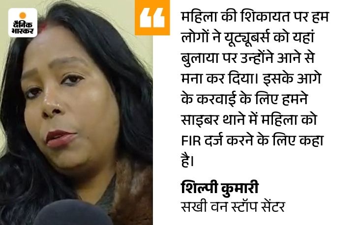 सखी वन स्टॉप सेंटर की केंद्रीय प्रशासक शिल्पी कुमारी ने कहा कि हमारे पास एक दिव्यांग महिला व्हीलचेयर से पहुंची थी। कुछ यूट्यूबर की ओर से महिला को जबरदस्ती यह बोलकर बुलाया जा रहा था कि वे लोग प्रेस वाले हैं और उसका इंटरव्यू लेंगे।