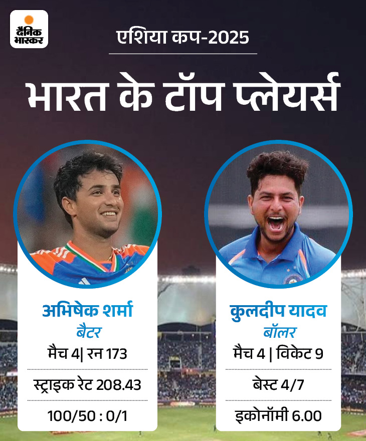 भारतीय प्लेइंग-11 में बदलाव की उम्मीद कम भारतीय टीम इस मैच में उसी प्लेइंग-11 के साथ उतर सकती है जो पाकिस्तान के ख़िलाफ सुपर-4 के मुकाबले में खेली थी। यानी अभिषेक शर्मा के साथ फिर से शुभमन गिल ओपनिंग करते नजर आएंगे और संजू सैमसन मिडिल ऑर्डर में खेलेंगे। जसप्रीत बु्मराह टीम में इकलौते स्पेशलिस्ट फास्ट बॉलर हो सकते हैं। ऑलराउंडर हार्दिक पंड्या और शिवम दुबे पेस बॉलिंग डिपार्टमेंट में बुमराह का साथ देंगे। इनके अलावा अक्षर पटेल, कुलदीप यादव और वरुण चक्रवर्ती के रूप में तीन स्पिनर शामिल होंगे।