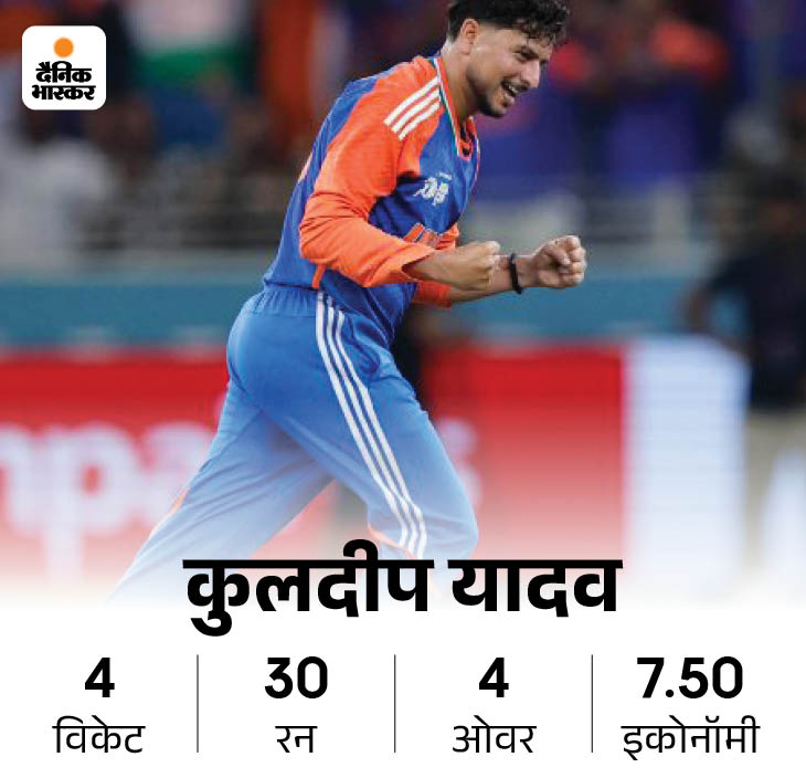 यहां से भारतीय स्पिन तिकड़ी का खेल शुरू हुआ। कुलदीप यादव ने 13वें ओवर की पांचवीं गेंद पर सईम अयूब का विकेट लिया। यहां से विकेटों का पतझड़ शुरू हो गया और हर ओवर में एक के बाद एक पाकिस्तानी बल्लेबाज सरेंडर करता चला गया। कुलदीप ने 17वें ओवर में तीन विकेट निकाल लिए। आखिरकार पाकिस्तान 19.1 ओवर में 146 रन पर ऑलआउट हो गया।