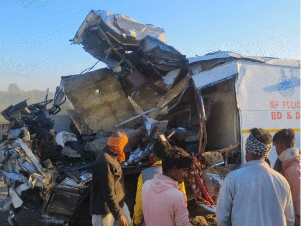एमपी में पुलिस वैन-कंटेनर की भिड़ंत, 4 जवानों की मौत