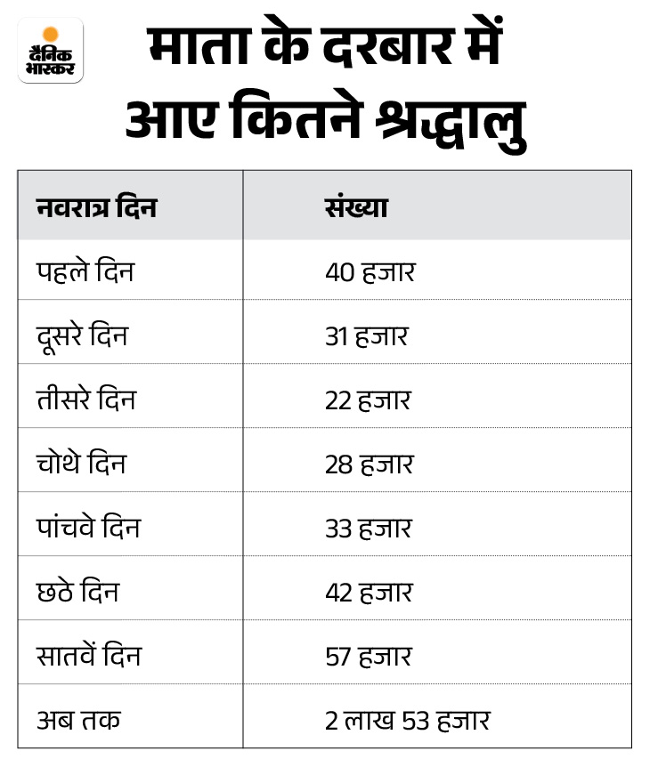 अश्विन नवरात्र के दौरान पंचकूला माता मनसा देवी मंदिर में मुख्य मेला आज से शुरू हो गया है। माता के दर्शनों को 7 दिन में 2.53 लाख श्रद्धालु आ चुके हैं। पंचकूला में श्री माता मनसा देवी मंदिर, श्री काली माता मंदिर कालका और चंडी माता मंदिर में श्रद्धालुओं