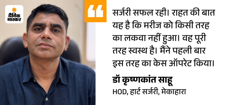डॉ साहू ने बताया कि ऑपरेशन से ही जान बच सकती थी, लेकिन ये बेहद जोखिम भरा था। गर्दन में खून का इतना थक्का जमा हो चुका था कि धमनी को पहचानना मुश्किल हो रहा था। जरा सी गलती से मरीज की मौके पर मौत हो सकती थी।