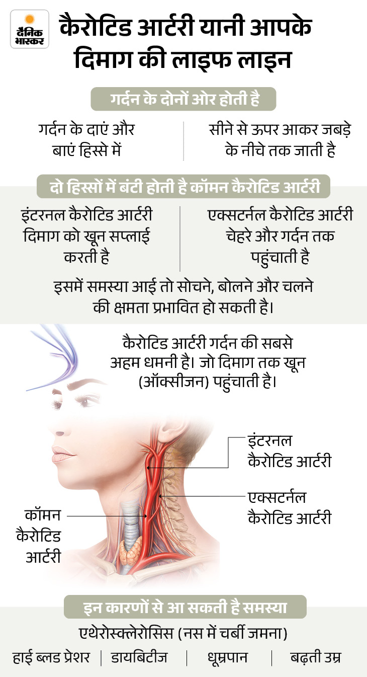 डॉ. साहू के मुताबिक आमतौर पर कैरोटिड ऑर्टरी रप्चर धमनियों (ऑर्टरी) के अंदर चर्बी, कोलेस्ट्रॉल और कैल्शियम की परत (प्लाक) जमने, एक्सीडेंट, इन्फेक्शन, ट्यूमर या कनेक्टिव टिश्यू डिसऑर्डर में होता है। लेकिन यह मरीज बिल्कुल स्वस्थ था।