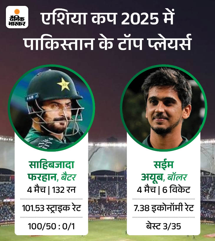 पाकिस्तानी को तीनों फॉर्मेट में अच्छा प्रदर्शन करना होगा सलमान आगा की कप्तानी वाली पाकिस्तानी टीम को अब हर हालत में जीत दर्ज करनी होगी। टीम को तीनों डिपार्टमेंट में अच्छा प्रदर्शन करना होगा। साहिबजादा फरहान ने टीम के लिए सबसे ज्यादा रन बनाए हैं। टीम को आज फिर उनसे अच्छे प्रदर्शन की उम्मीद होगी। बॉलिंग में सईम अयूब ने टीम के लिए अच्छा परफॉर्म किया है।