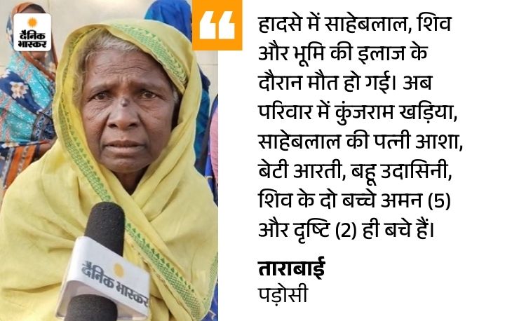 पड़ोस में रहने वाली ताराबाई ने बताया कि कुंजराम खड़िया के परिवार में उनका बेटा साहेबलाल खड़िया, बहू आशा खड़िया, पोता शिव खड़िया, शिव की पत्नी उदासिनी खड़िया, शिव की बहन आरती और शिव के तीन बच्चे साथ रहते थे।