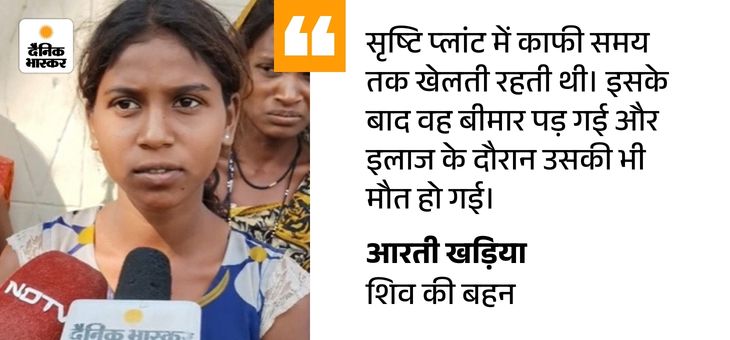 साहेबलाल की बेटी आरती ने बताया कि इससे पहले भी मंगल कार्बन प्लांट की धूल और डस्ट के कारण शिव खड़िया की तीन वर्षीय बेटी सृष्टि की तबीयत बिगड़ गई थी। वह अक्सर अपने माता-पिता के साथ प्लांट जाती थी।