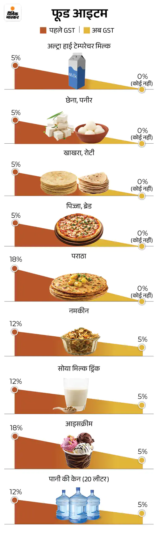 - ऑटो पार्ट्स और थ्री-व्हीलर पर भी टैक्स 28% से 18% हुआ, जिससे ये सस्ते होंगे।