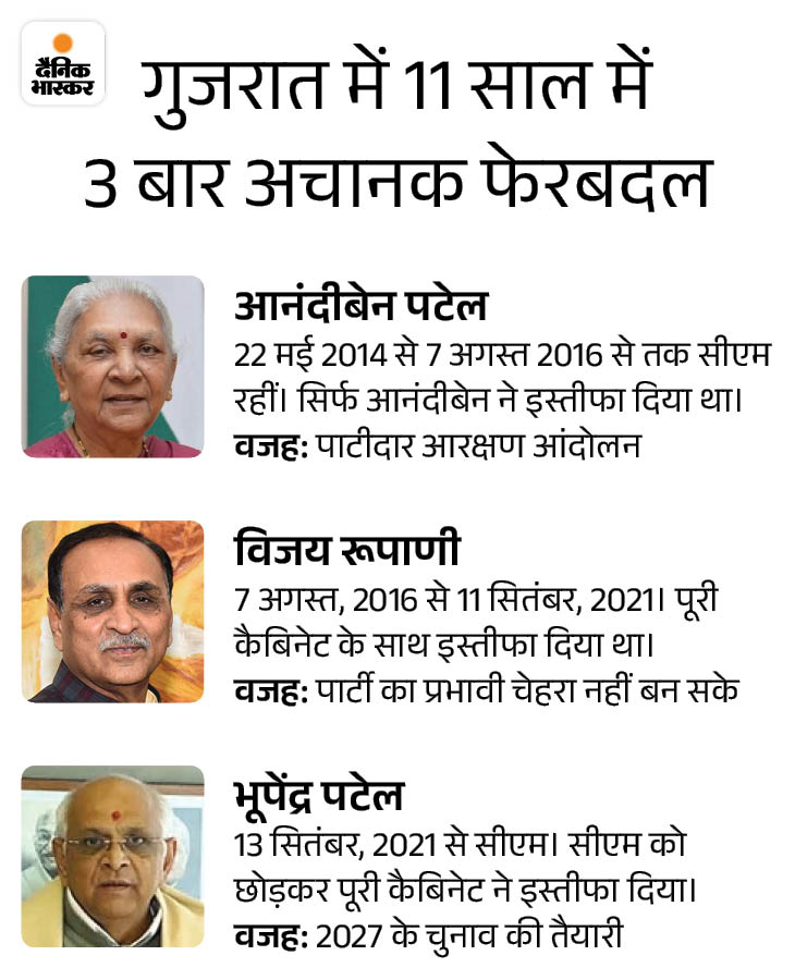 गुजरात में भूपेंद्र सरकार के सभी 16 मंत्रियों का इस्तीफा: कल 11.30 बजे नई कैबिनेट की शपथ; नए चेहरों पर फोकस, दो डिप्टी सीएम हो सकते हैं
