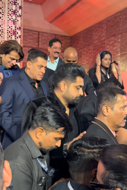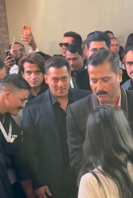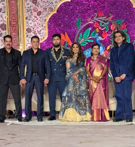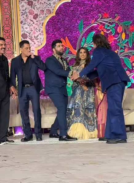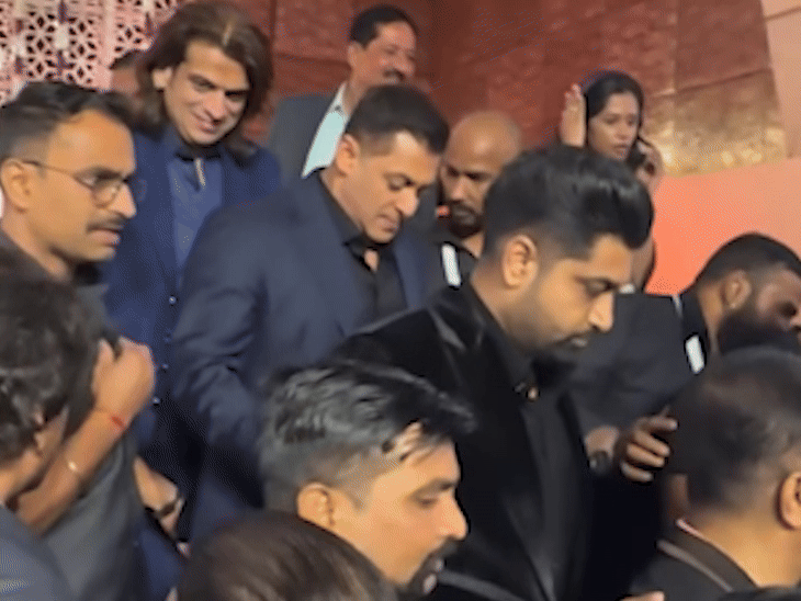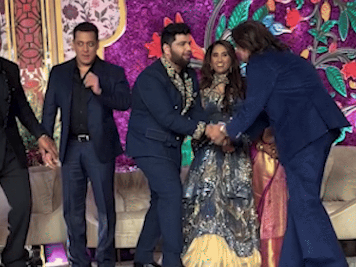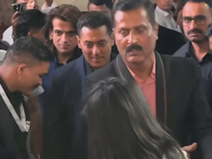 रिसेप्शन में सलमान खान ब्लू टू पीस सूट में पहुंचे। उन्होंने टाइट सिक्योरिटी के साथ एंट्री ली।
