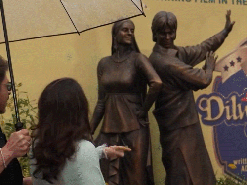 फिल्म के मशहूर पोज में बनाई गई मूर्ति में शाहरुख और काजोल को उनके किरदार राज और सिमरन के रूप में दिखाया गया है। स्टैच्यू के लॉन्चिंग के दौरान दोनों सितारों ने साथ में फोटो भी खिंचवाईं। शाहरुख काले सूट में नजर आए जबकि काजोल नीली साड़ी में दिखीं।