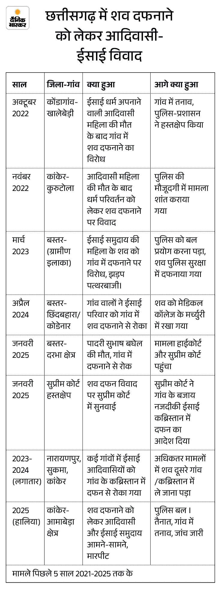 कांकेर के आमाबेड़ा और बड़े तेवड़ा इलाके में बने 3 चर्च और प्रार्थना भवनों में आगजनी, पत्थरबाजी और तोड़फोड़ हुई थी। पुलिस को लाठीचार्ज करना पड़ा था।
