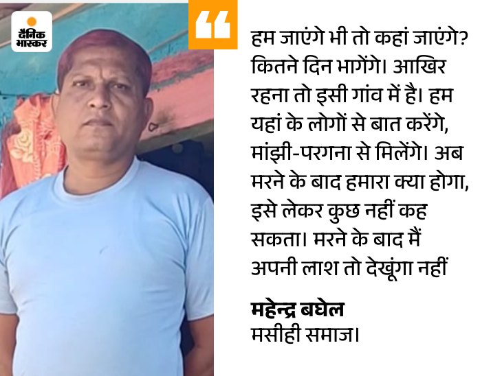 महेंद्र बघेल का कहना है कि घटना के वक्त वे घर पर ही थे। हिंसा और शोर सुनकर मैं घर से बाहर नहीं निकला। महेंद्र के मुताबिक, बाकी मसीही समाज के लोग फिलहाल गांव छोड़ चुके हैं। गांव छोड़ने के सवाल पर वे कहते हैं कि आगे क्या होगा, यह साफ नहीं है।