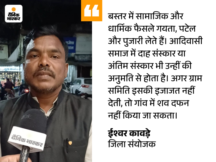 जो आदिवासी अपने पेन-पुरखा का नहीं, वे आदिवासी नहीं…कांकेर के आमाबेड़ा पहुंचने से करीब डेढ़ किलोमीटर पहले सड़क किनारे लगा यह पोस्टर सबसे पहले नजर आता है। यही इलाका है, जहां बड़े तेवड़ा गांव में सरपंच ने अपने पिता के शव को बाड़ी में दफनाया। इसके बाद वि