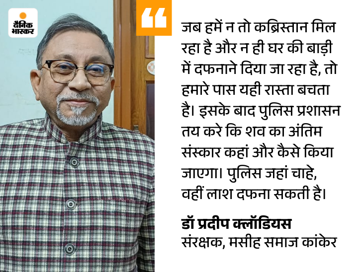 मसीह समाज कांकेर के संरक्षक डॉ. प्रदीप क्लॉडियस का कहना है कि हालात को देखते हुए समाज ने अब एक फैसला लिया है। डॉ. क्लॉडियस के मुताबिक,अगर मसीह समाज से जुड़े किसी व्यक्ति की मौत होती है, तो उसकी लाश सीधे थाने ले जाकर छोड़ी जाएगी।
