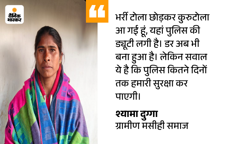 भर्री टोला छोड़कर मैं कुरुटोला आ गई हूं, क्योंकि यहां पुलिस की ड्यूटी लगी है। हालांकि, श्यामा का कहना है कि डर अब भी बना हुआ है। सवाल ये है कि पुलिस कितने दिनों तक हमारी सुरक्षा कर पाएगी।