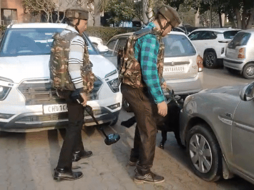 डॉग स्क्वाड की टीम सोमवार को अहमदाबाद ग्रामीण कोर्ट के परिसर में जांच करने पहुंची थी।